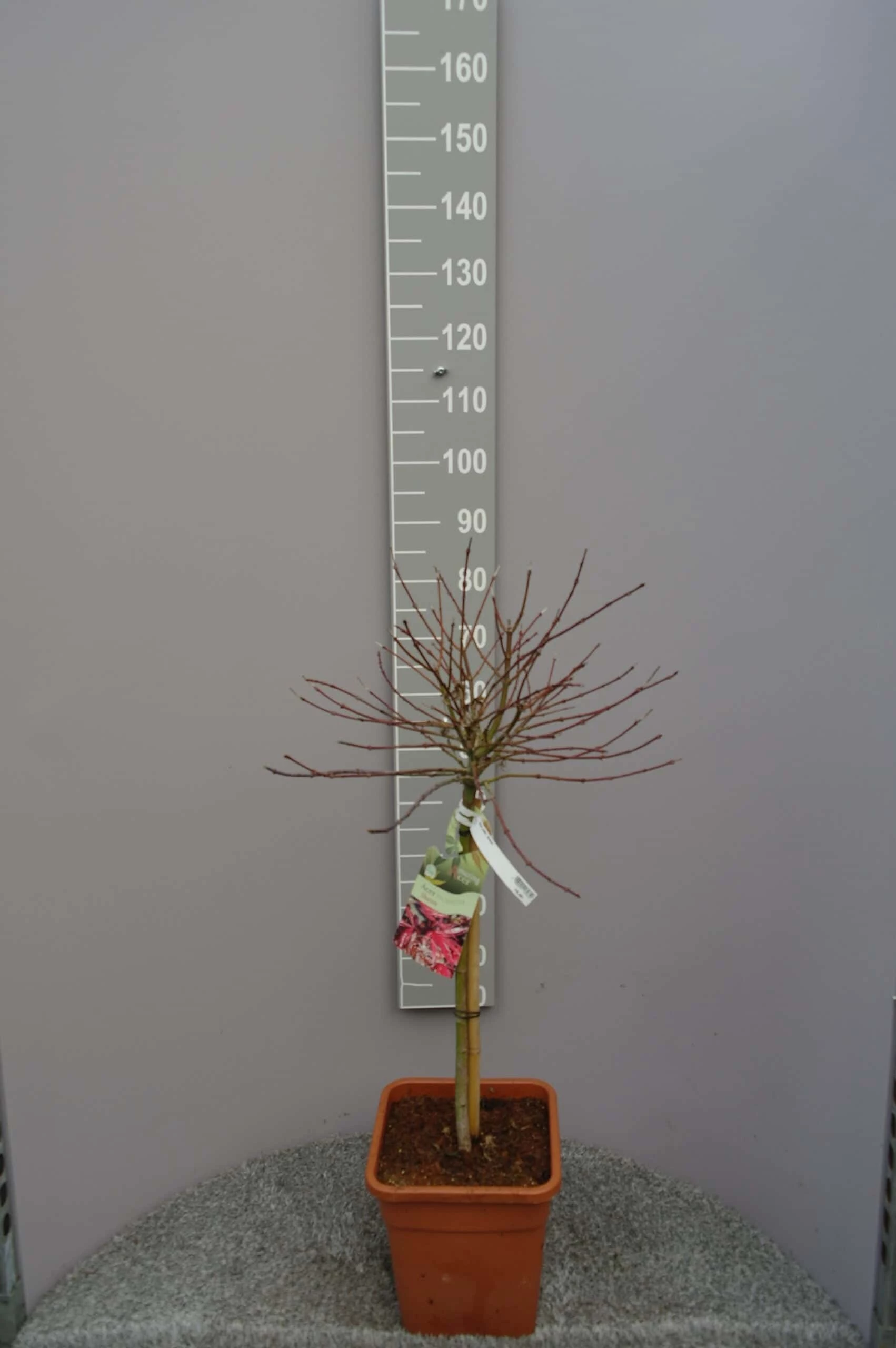 De Acer Palmatum ‘Shaina’ op stam heeft een stamhoogte van 60 cm en een kroon van 40 cm. Hij loopt rood uit in het voorjaar, in de zomer verkleurd hij naar purper om in de herfst intens rood te worden. De standplaats is in de zon of halfschaduw. Let er wel op dat u bij het aanplanten tuinturf aan de wortels toevoegt. Om hem in vorm te houden kunnen in het voorjaar de lange uit stekende takken gesnoeid worden.
