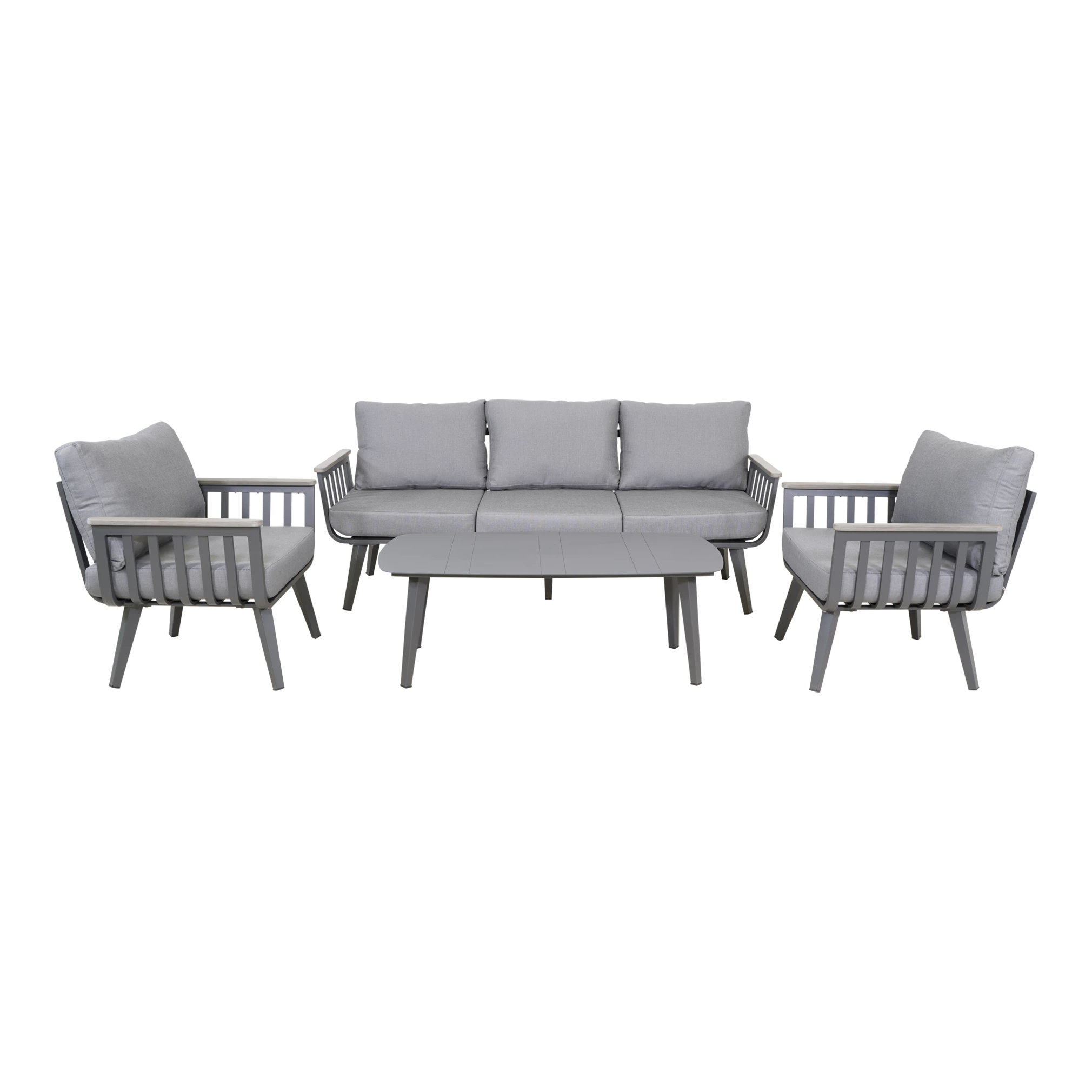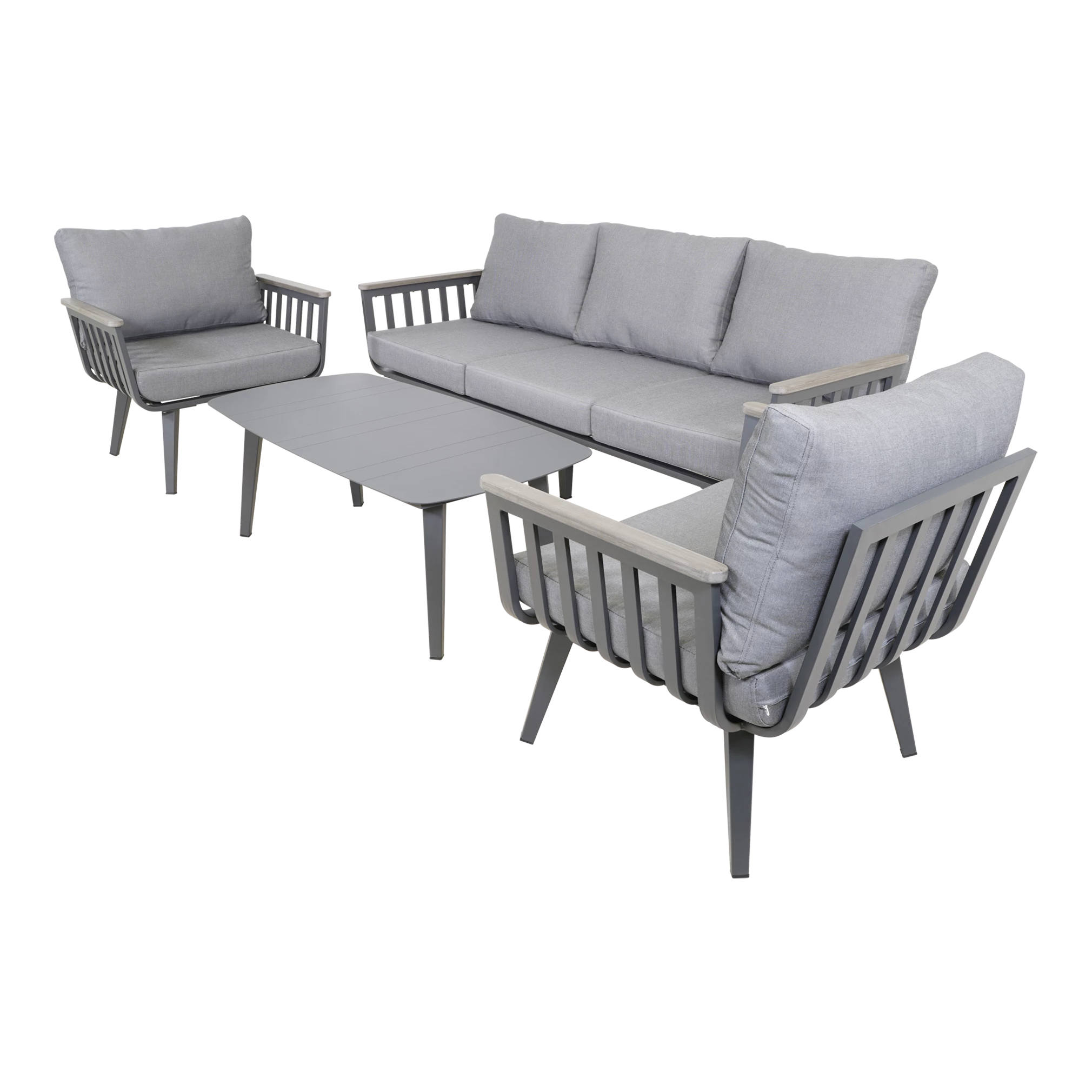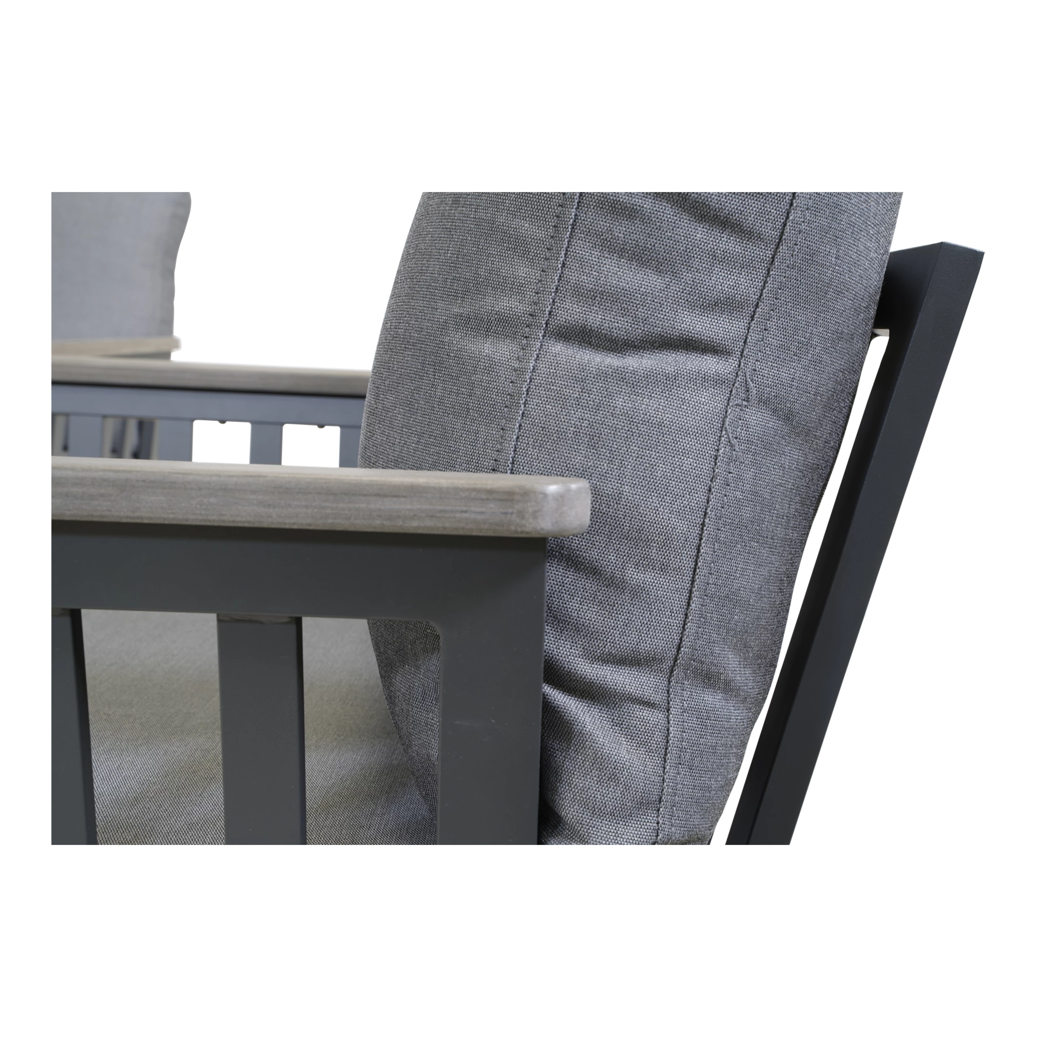 De Amalfi loungeset bestaat uit twee loungestoelen, een 3-zits loungebank en een koffietafel.