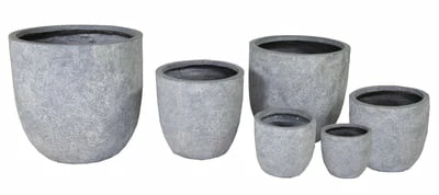 | Arizona Egg Pot Washed Grey | Ø 25 cm, Hoogte 25 cm, Ø 32 cm, Hoogte 31 cm, Ø 39 cm, Hoogte 38 cm, Ø 45 cm, Hoogte 43 cm, Ø 55 cm, Hoogte 51 cm, Ø 62 cm, Hoogte 62 cm |