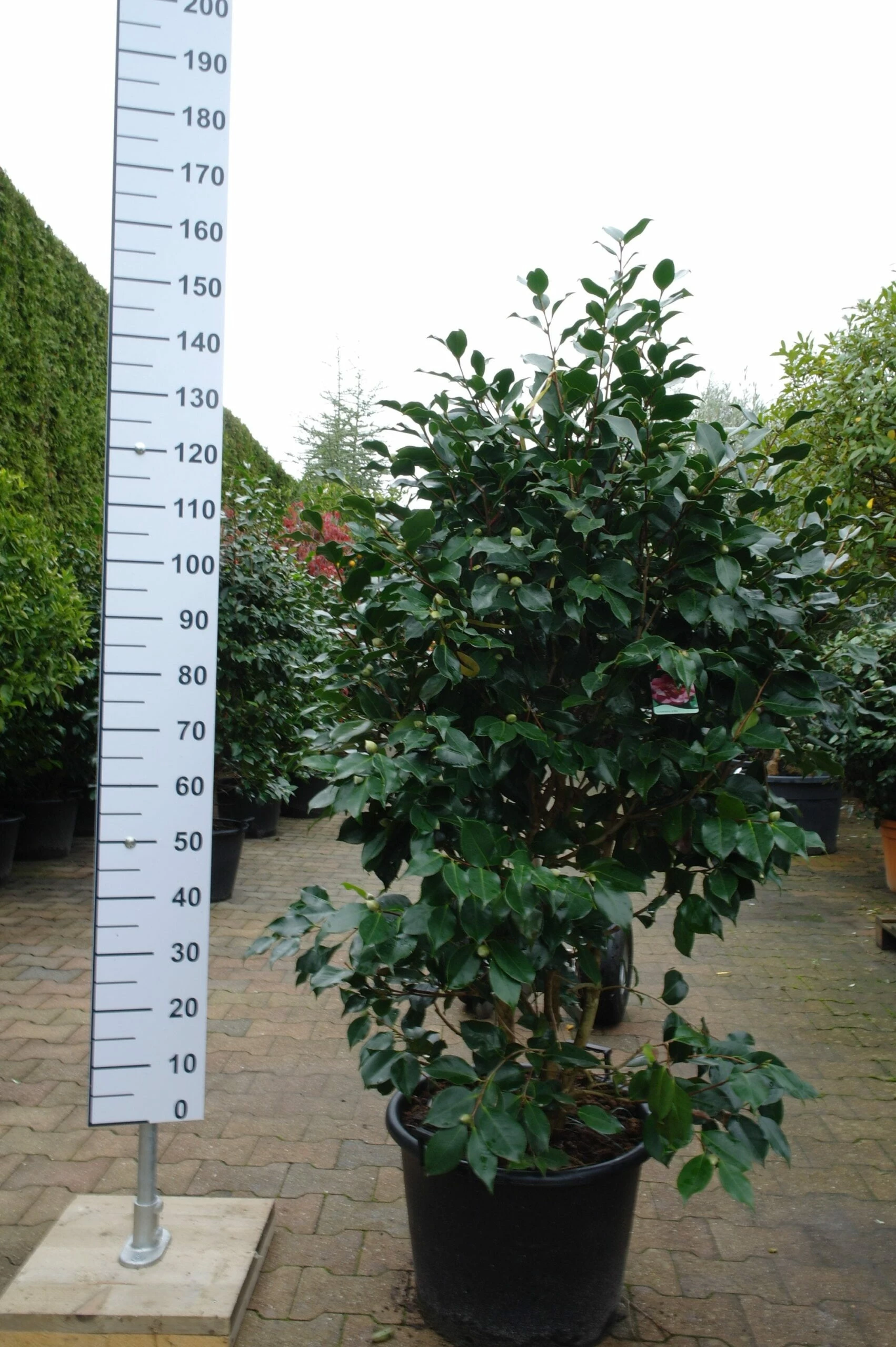 De Camellia Japonica ‘Chandlerii’ is een bladhoudende heester met opvallende roze bloemen en donkergroene bladeren. Deze struik, ook wel bekend als de Japanse Roos, is een ware blikvanger door het kleurrijke contrast tussen de bloemen en het blad.