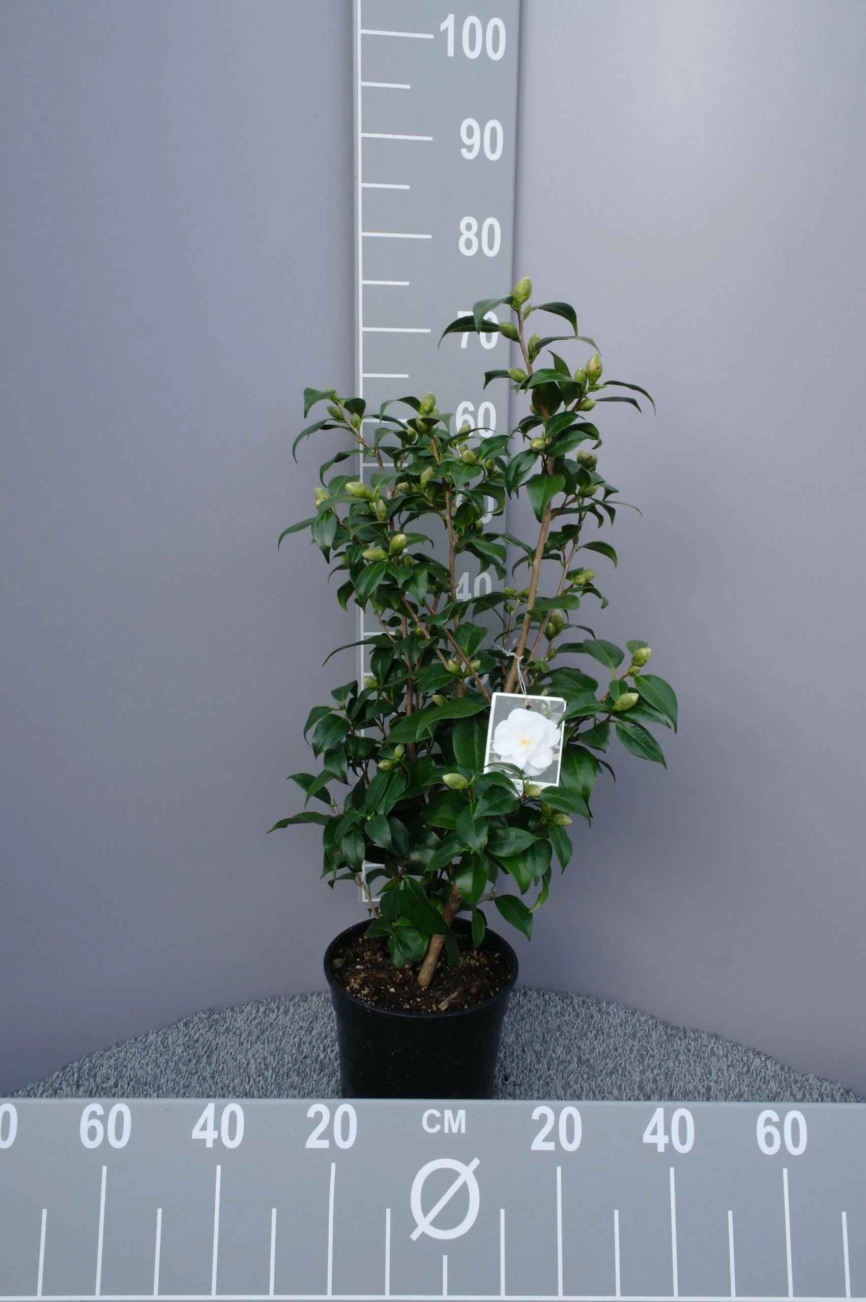De glanzende groene bladeren hebben een leerachtige textuur. De Camelia bloeit van februari tot april en krijgt dan grote ivoorkleurige bloemen. Hij geeft de voorkeur aan een standplaats in de halfschaduw, weg van de vroege ochtendzon en de koude wind. De grond moet vochtig, licht zuur en goed waterdoorlatend zijn.