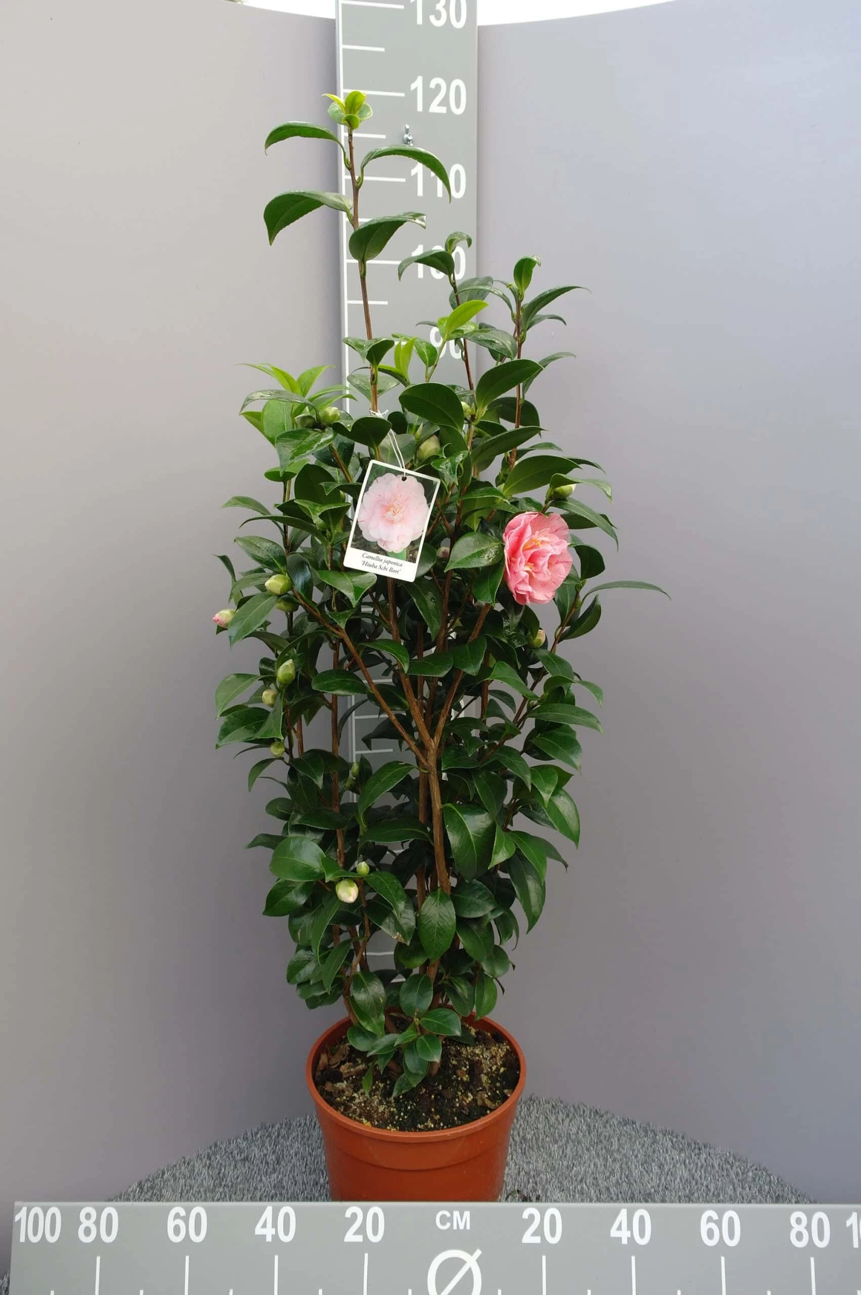 De ‘Hiuba Schi Bori’ onderscheidt zich door de grote en volle roze bloemen. Het blad van deze heester is donkergroen, glanzend en heeft een leerachtige textuur. Het is een groenblijvende heester, wat betekent dat ze het hele jaar door haar bladeren behoudt. Deze struik kan prima tegen de kou, maar bij strenge vorst kan enige bescherming nodig zijn. Kies een standplaats in de halfschaduw, beschermd tegen de vroege ochtendzon en koude wind. De Camelia heeft een voorkeur voor lichtzure, humusrijke, vochtige maar goed doorlatende grond.