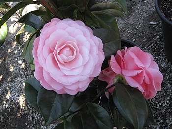 De ‘Nuccio’s Cameo’ onderscheidt zich door de grote en volle zachtroze bloemen. Het blad van deze heester is donkergroen, glanzend en heeft een leerachtige textuur. Het is een groenblijvende heester, wat betekent dat ze het hele jaar door haar bladeren behoudt. Deze struik kan prima tegen de kou, maar bij strenge vorst kan enige bescherming nodig zijn. Kies een standplaats in de halfschaduw, beschermd tegen de vroege ochtendzon en koude wind. De Camelia heeft een voorkeur voor lichtzure, humusrijke, vochtige maar goed doorlatende grond.