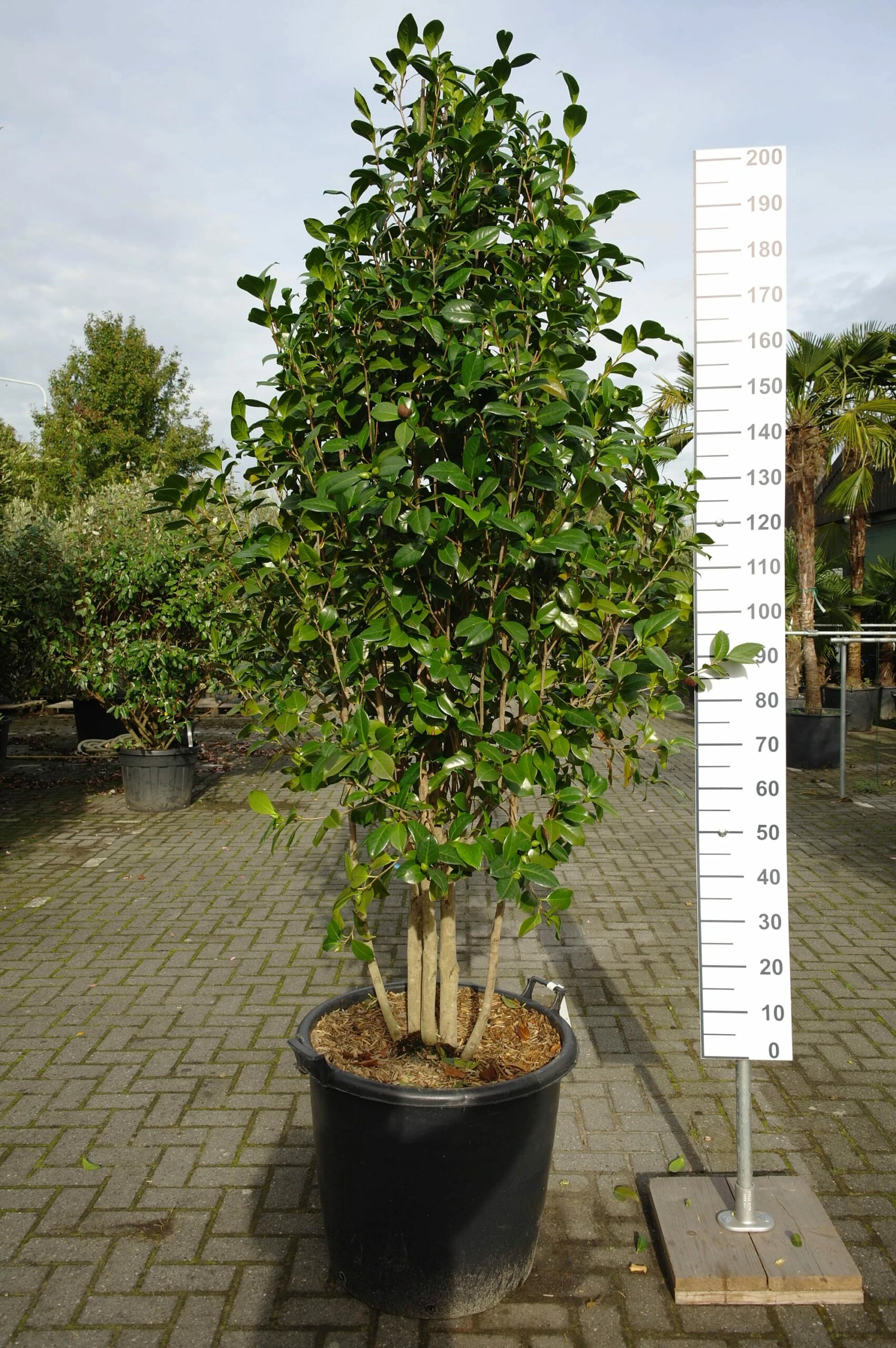 Deze meerstammige struik wordt gekenmerkt door haar leerachtige, glanzende bladeren. De bloemen van de Camellia Japonica ‘Snow ball’ zijn wit, groot en opvallend. De Camellia japonica groeit het liefst in de halfschaduw en heeft een voorkeur voor een beschutte standplaats, beschermd tegen koude oostenwind. De grond moet licht zuur, humusrijk en goed gedraineerd zijn. De plant groeit oppervlakkig en heeft een hekel aan kalk.