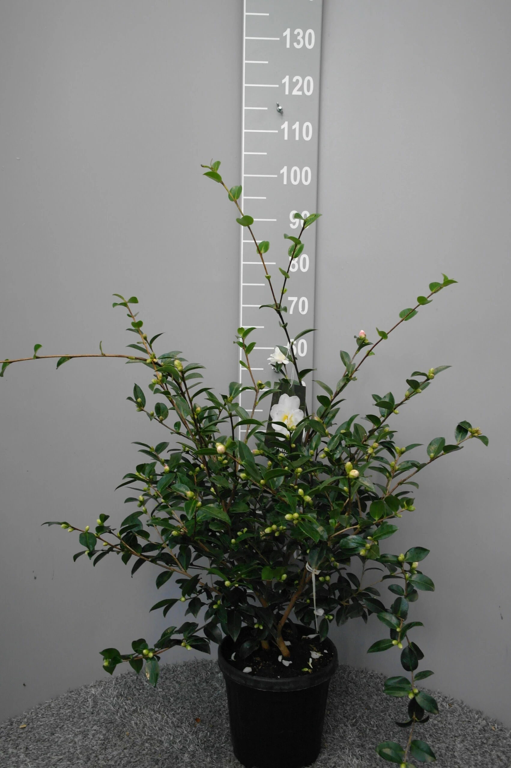 De Camellia Sasanqua ‘Hina Yuki’ is een groenblijvende struik. Vanaf oktober/november bloeit ‘Hina Yuki’ met witte halfgevulde bloemen met een vleugje roze. Hij groeit vrij snel voor een Camellia en heeft een krachtige, bossige groeiwijze en wordt 300-400 cm hoog. De standplaats is op een beschutte plek in de zon of half schaduw en hij heeft een voorkeur voor een lichtzure grond. Voeg hiervoor tuinturf toe. Wanneer hij beschut staat is hij goed winterhard, ter bescherming tegen de vorst kunt u nog boomschors op de bodem leggen.