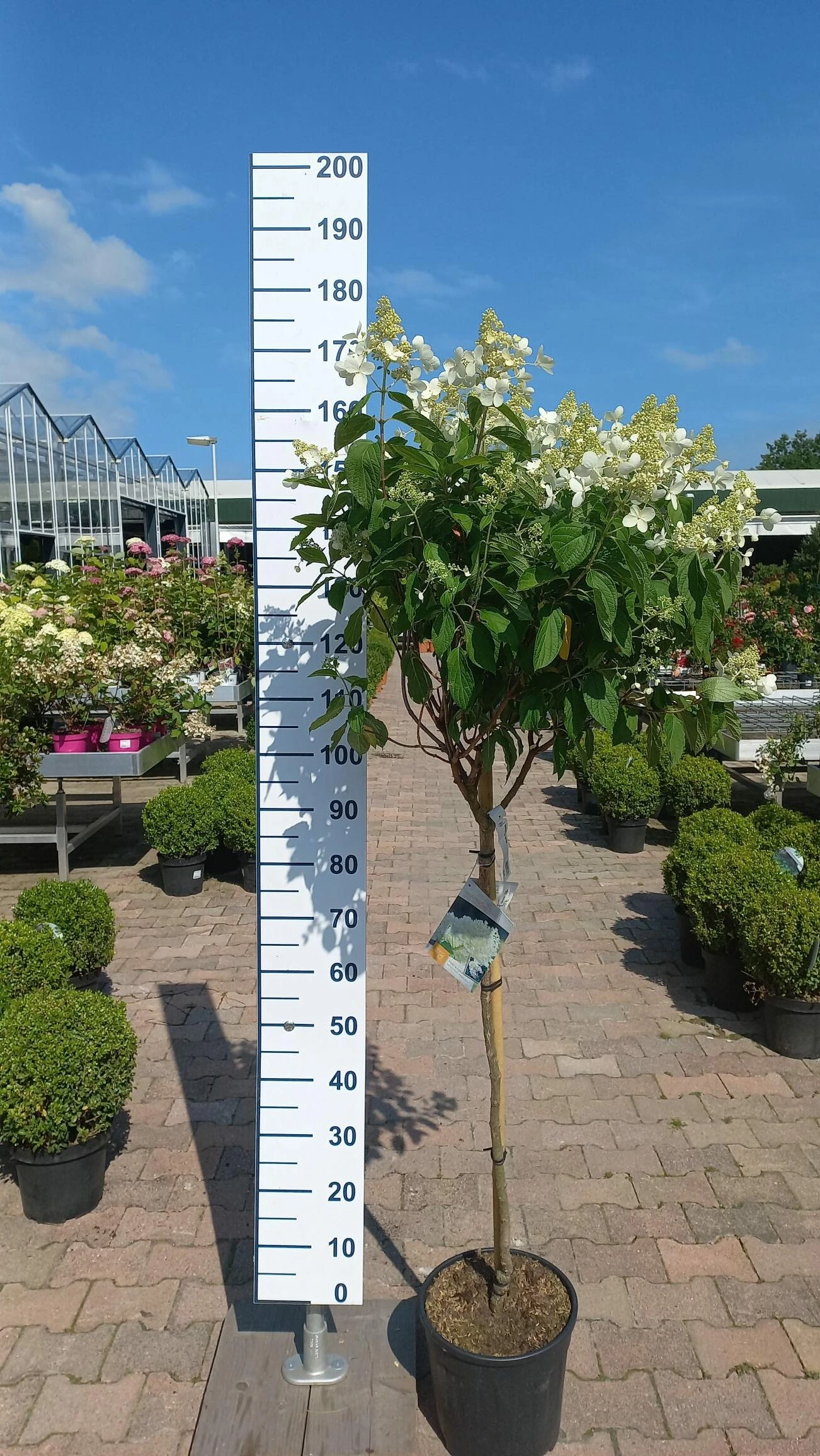 De Hydrangea Paniculata Limelight is een pluimhortensia met stevige takken zodat lime kleurige bloemen niet omvallen. De lime kleurige bloemen verschijnen vanaf juli-augustus aan de plant en verkleuren later in het seizoen naar roze. Deze Hortensia heeft een stam van 90 cm. De standplaats is bij voorkeur op koele, licht tot rijk beschaduwde plaats. Bij teveel aan zon of een tekort aan water kunnen de bladeren verdrogen of verbranden. Omdat de hortensia op nieuw hout bloeit, knipt u de plant elk jaar na de winter terug tot op 10 tot 15 cm boven de grond. Wanneer de ‘Limelight’ achterin een border staat en wat hoger mag worden, knipt u hem elk jaar terug tot 50 tot 60 cm boven de grond.