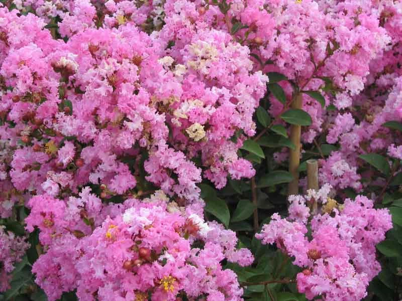 De Lagerstroemia ‘Mardi Gras’ is een prachtige cultivar met een mooie afschilferende schors. Het is een recht opgaande heester, de bladeren verkleuren van geel tot rood in de herfst. Van juli tm september zit hij vol met prachtige roze bloempluimen. Om veel bloemen te krijgen moet hij wel beschut staan op een zonnige plaats. Na een ‘kwakkel’ zomer kan de bloei wat tegen vallen. De eerste paar jaar kunt u het beste de Lagerstroemia in de winter beschermen met een winterafdekhoes.