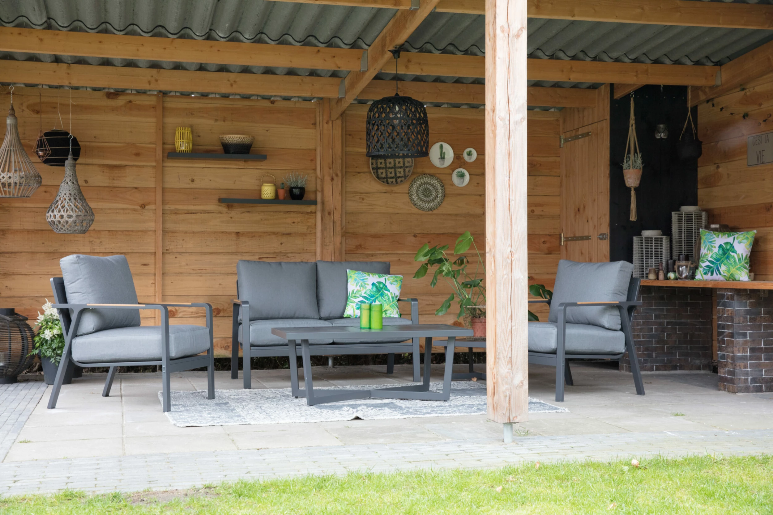 Dankzij het aluminium frame is deze loungeset gemakkelijk in het onderhoud. Neem af en toe de tuinset af met een zachte doek of spons en een sopje. Voor het sopje kunt u gebruik maken van een milde zeepoplossing. Bijkomende voordelen van een aluminium frame zijn de sterkte van dit materiaal in combinatie met het lichte gewicht. Daarnaast is de tuinset roestvrij en weerbestendig.