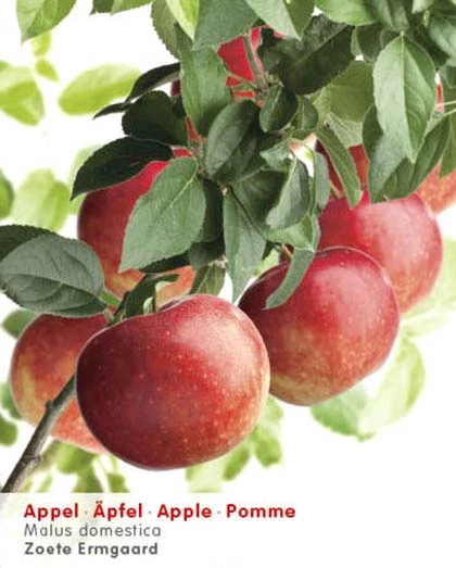 De Malus domestica ‘Zoete Ermgaard’ bloeit in april-mei met witroze bloemen. Deze groeien uit tot donkerrode appels. Door de melige smaak is deze appel niet echt geschikt als handappel, maar is wel ideaal als stoofappel. Half september zijn ze rijp om te plukken. De standplaats van een appelboom is in de zon/halfschaduw (hoe meer zon hoe zoeter de vrucht) op een humusrijkebodem. Wanneer u een zware kleigrond of schrale zandgrond, verbeter de bodem dan met vivimus bodemverbeteraar of goede compost. Snoeien van de appelboom kan het beste in de wintermaanden, wanneer het niet vriest.
