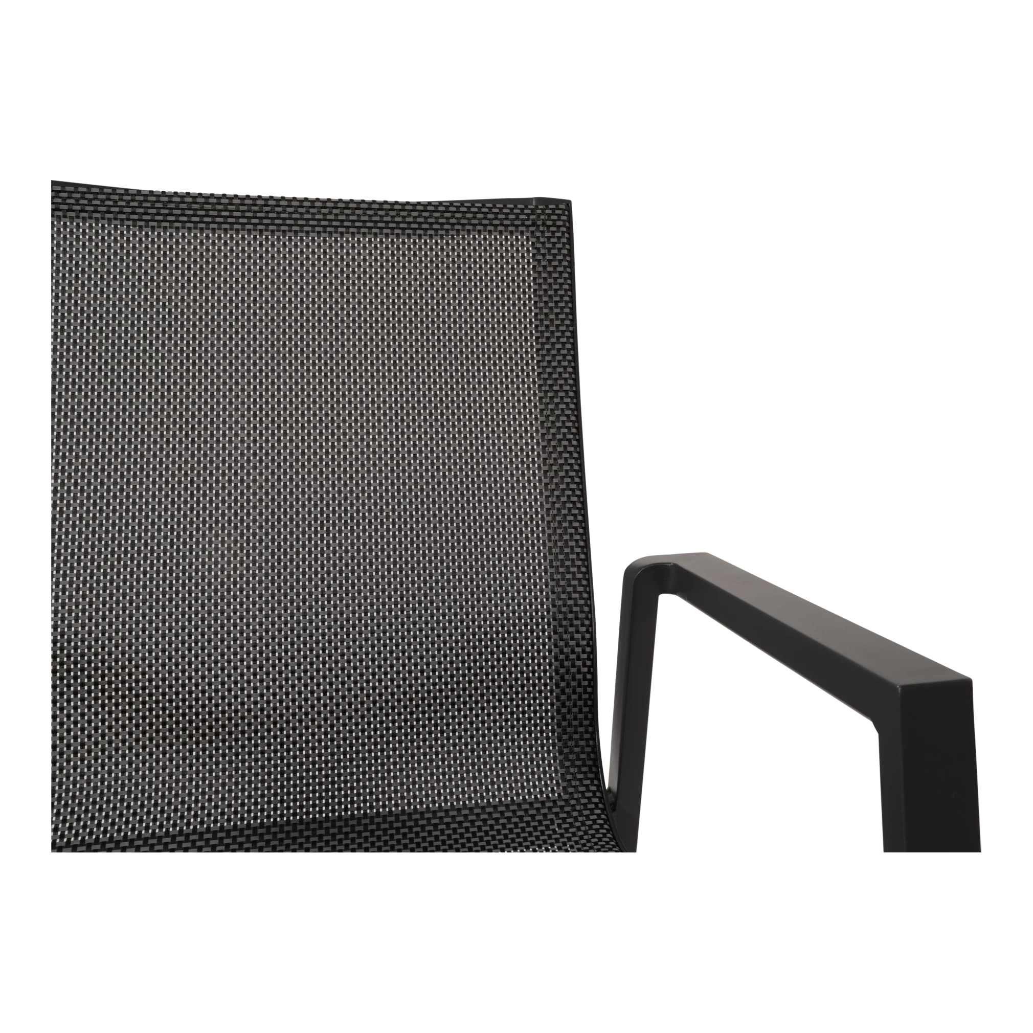 Het zitvlak en de rugleuning zijn gemaakt van textileen. Dit is een stof met een aantal fijne eigenschappen die met name buiten goed tot zijn recht komen. De stof is gemaakt van sterke PVC draden die voorzien zijn van een coating. De stoel is daardoor sterk, UV bestendig, niet of nauwelijks vatbaar voor schimmels, vuil en ongedierte.