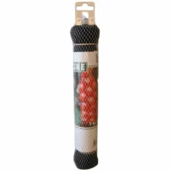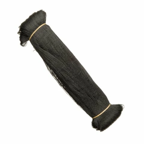 Primo. Dit zwarte net is van polyethyleen, is uv-bestendig en heeft een dichtheid van 12 g/m². De mazen hebben een opening van 28 mm en de draden hebben een dikte van 16 tot 17 µ. Het net kan meerdere malen gebruikt worden.