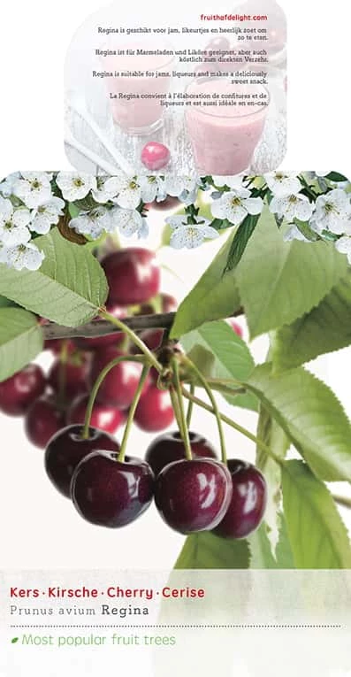 De Prunus avium ‘Regina’ bloeit in het voorjaar met kleine witte bloemen. De kersen zijn groot en rood-zwart van kleur en zoet. In juli zijn ze rijp om te plukken. Snoeien kan zowel na de bloei als na de oogst gebeuren, na de oogst is het het beste. Deze kers is goed winterhard, verdraagt wat droogte, is zeewind en luchtvervuiling tolerant, lokt bijen en vlinders. De standplaats is in de zon op een luchtige, voedselrijke bodem. Natte standplaatsen worden slecht verdragen.