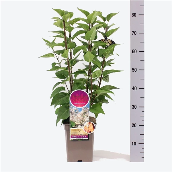 De ‘Beauty of Moskou’ is 1 van de mooiste Seringen. Hij heeft de grootste bloemen en ruikt het meest van alle soorten. De grote helder witte bloemen komen in mei uit de roze-paarse knoppen. Hij bloeit in mei-juni en wordt ongeveer 3-4 meter hoog. De standplaats is in de zon of halfschaduw, maar in de zon krijgt de Sering de meeste bloemen en bloeit hij langer door.