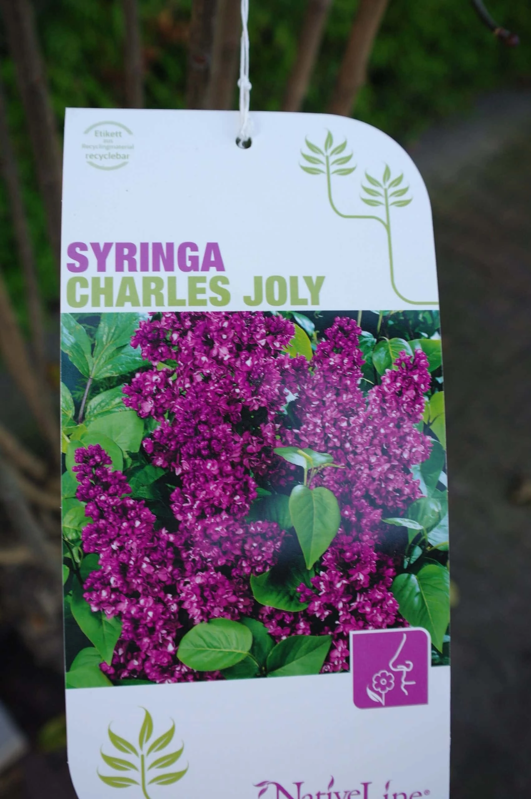 De ‘Charles Joly’ is een middelgrote tot grote, bladverliezende sering met een bossige, breed opgaande groei. Hij bloeit met kleine dubbele bloemen, paarsrood van kleur en sterk geurend. Deze Sering is na 10 jaar 3 m hoog en breed. Hij bloeit in mei-juni en wordt ongeveer 3-4 meter hoog. De standplaats is in de zon of halfschaduw, maar in de zon krijgt de Sering de meeste bloemen en bloeit hij langer door.